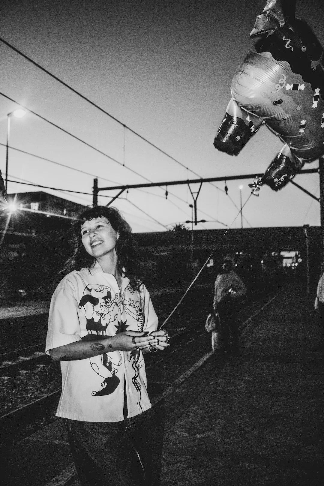 Forget the rat race. For this shoot, we imagined a world where you skip the office and choose freedom instead. Shot at Observatory train station and inside a local train, our models look like they’ve just wrapped up a wild date at an amusement park . Holding onto a giant piñata balloon, still buzzing from the ride.